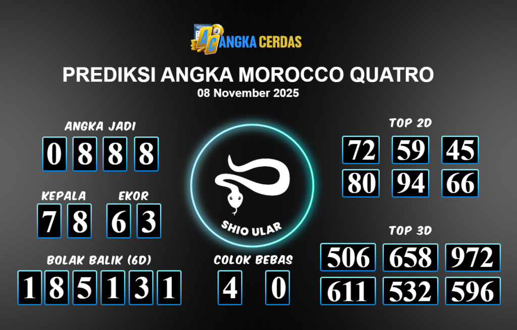 Prediksi Togel MOROCCO QUATRO untuk hari ini Jumat 07 November 2025, adalah salah