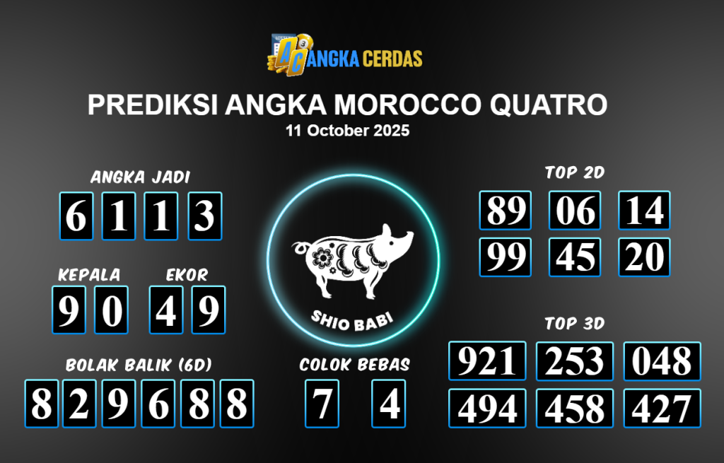Prediksi Togel MOROCCO QUATRO untuk hari ini Sabtu 11 Oktober 2025, adalah salah