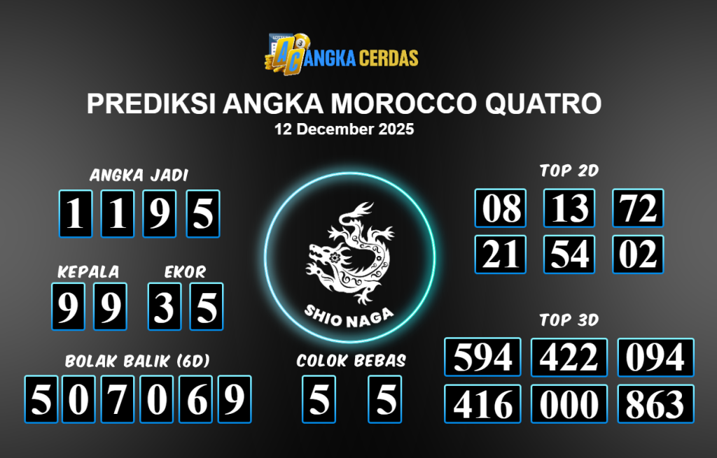 Prediksi Togel MOROCCO QUATRO untuk hari ini Jmuat 12 Desember November 2025, adalah salah