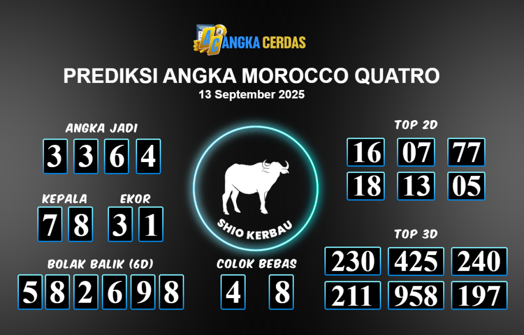 Angka Cerdas : Bocoran Prediksi Togel MOROCCO QUATRO Tanggal 13 September 2025