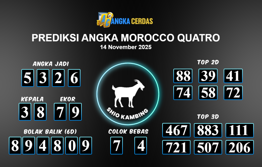 Prediksi Togel MOROCCO QUATRO untuk hari ini Jumat 14 November 2025, adalah salah