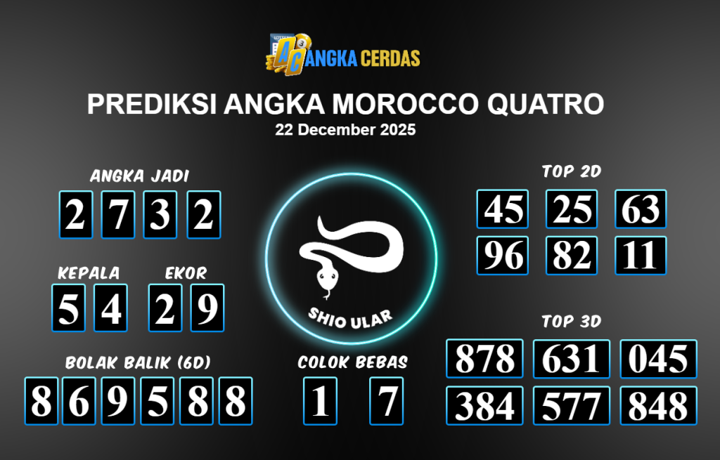 Prediksi Togel MOROCCO QUATRO untuk hari ini Senin 22 Desember November 2025, adalah salah