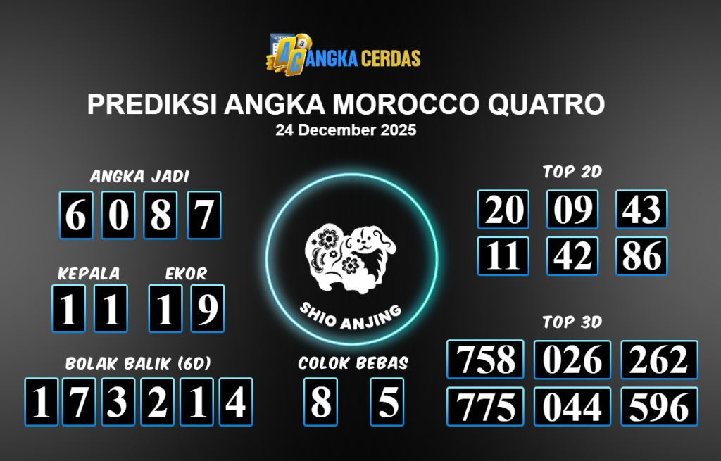 Prediksi Togel MOROCCO QUATRO untuk hari ini Rabu 24 Desember November 2025, adalah salah