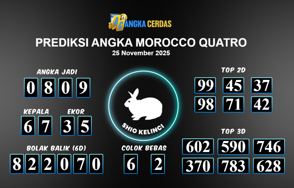 Prediksi Togel MOROCCO QUATRO untuk hari ini Selasa 25 November 2025, adalah salah