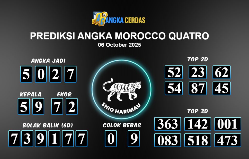 Prediksi Togel MOROCCO QUATRO untuk hari ini Sabtu 27 September 2025, adalah salah