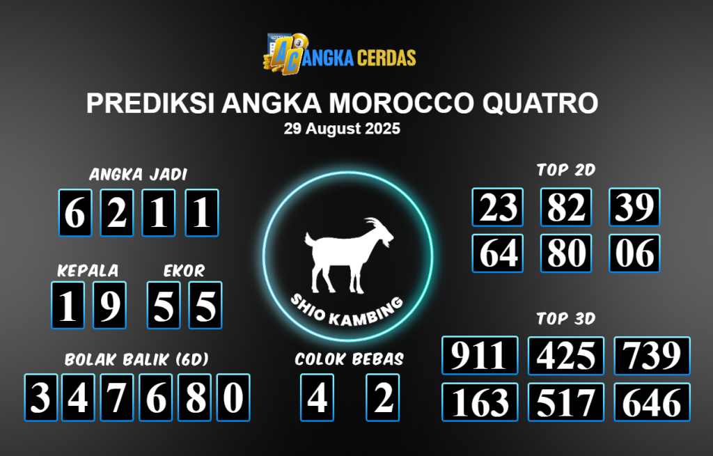 Angka Cerdas : Bocoran Prediksi Togel MOROCCO QUATRO Tanggal 29 Agustus 2025