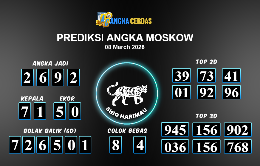 Prediksi Togel MOSKOW untuk hari ini Minggu, 08 Maret 2026, adalah salah