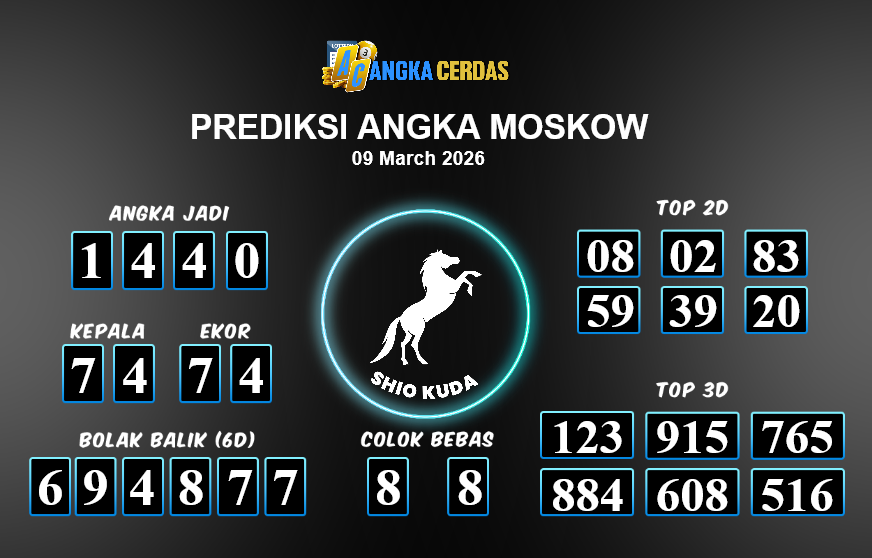 Prediksi Togel MOSKOW untuk hari ini Senin, 09 Maret 2026, adalah salah