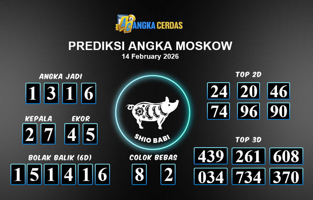 Prediksi Togel MOSKOW untuk hari ini Sabtu, 14 Februari 2026, adalah salah