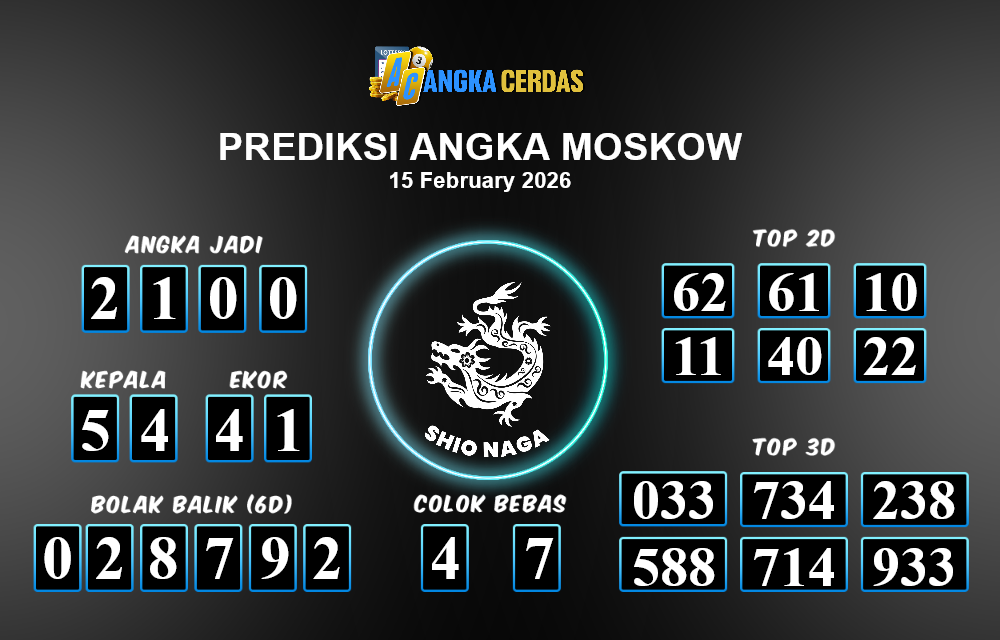 Prediksi Togel MOSKOW untuk hari ini Minggu, 15 Februari 2026, adalah salah