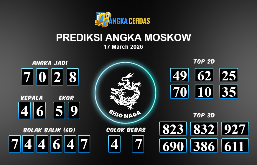Prediksi Togel MOSKOW untuk hari ini Selasa, 17 Maret 2026, adalah salah