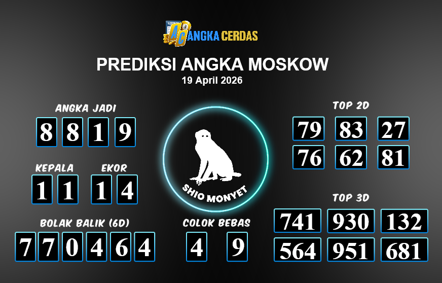 Prediksi Togel MOSKOW untuk hari ini Minggu, 19 April 2026, adalah salahsatu jenis togel yang memiliki banyak penggemar.Ini terutama ditujukanbagi Anda yang menyukai 4d/3d/2d. Prediksi Angka Cerdas yang kamisediakan,bisa