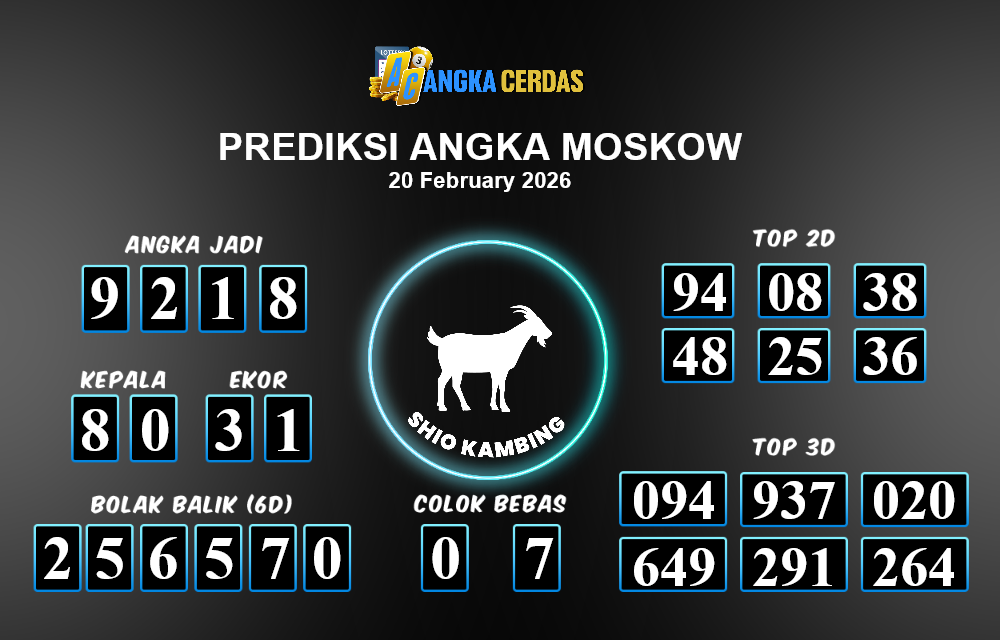 Prediksi Togel MOSKOW untuk hari ini Jumat, 20 Februari 2026, adalah salah
