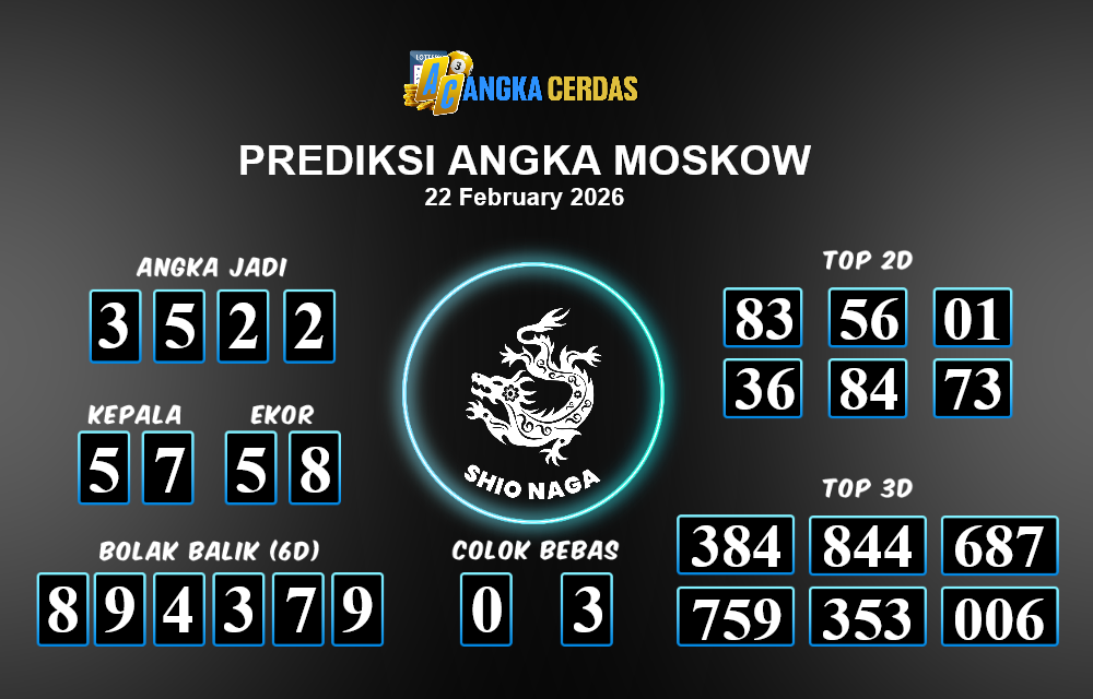 Prediksi Togel MOSKOW untuk hari ini Minggu, 22 Februari 2026, adalah salah