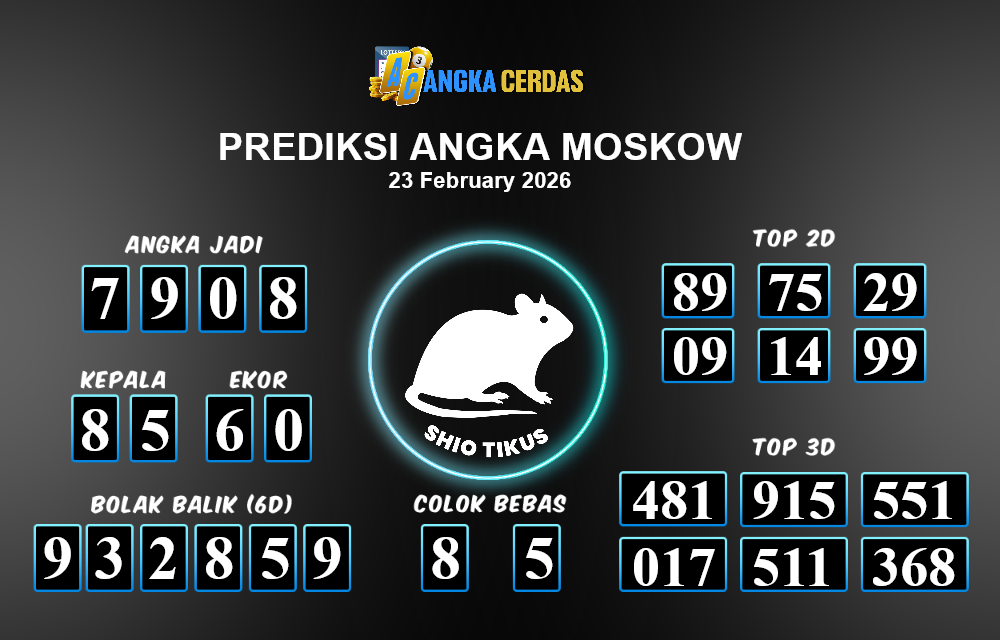 Prediksi Togel MOSKOW untuk hari ini Senin, 23 Februari 2026, adalah salah