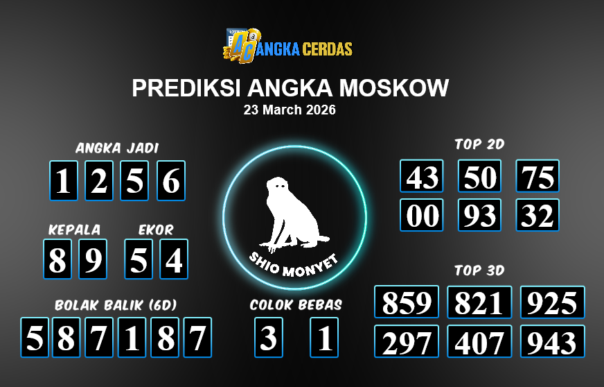 Prediksi Togel MOSKOW untuk hari ini Senin, 23 Maret 2026, adalah salah