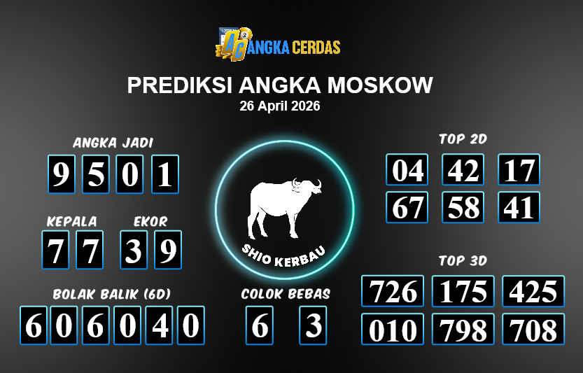 Prediksi Togel MOSKOW untuk hari ini Minggu, 26 April 2026, adalah salahsatu jenis togel yang memiliki banyak penggemar.Ini terutama ditujukanbagi Anda yang menyukai 4d/3d/2d. Prediksi Angka Cerdas yang kamisediakan,bisa