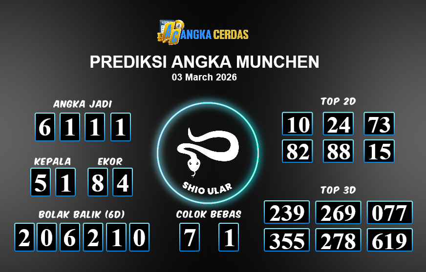 Prediksi Togel MUNCHEN untuk hari ini Selasa, 03 Maret 2026, adalah salah