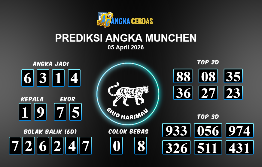 Prediksi Togel MUNCHEN untuk hari ini Minggu, 05 April 2026, adalah salah