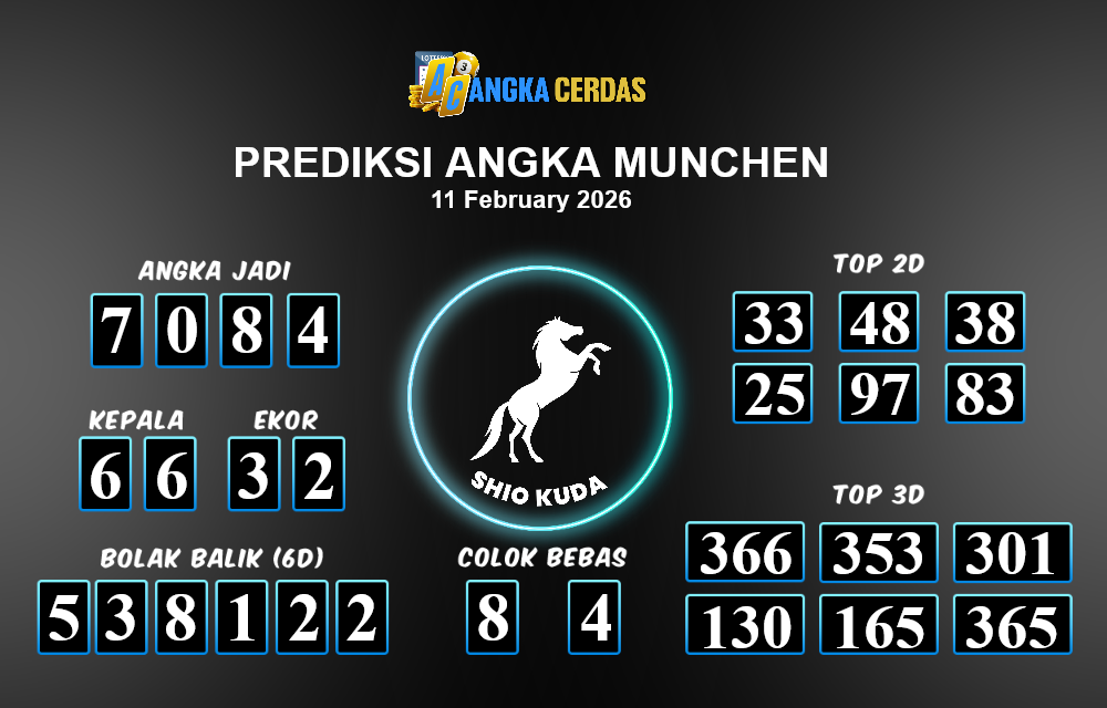 Prediksi Togel MUNCHEN untuk hari ini Rabu, 11 Februari 2026, adalah salah