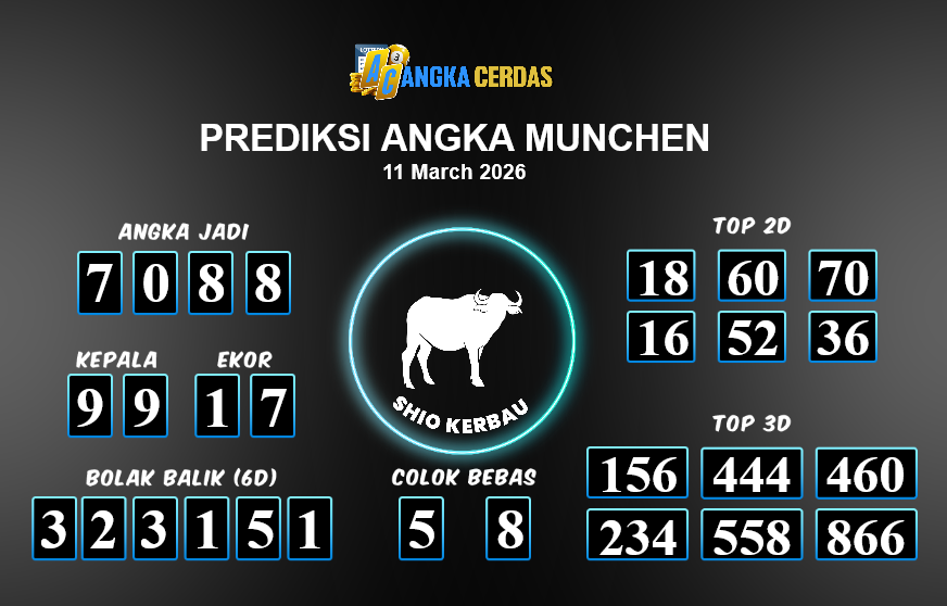 Prediksi Togel MUNCHEN untuk hari ini Rabu, 11 Maret 2026, adalah salah