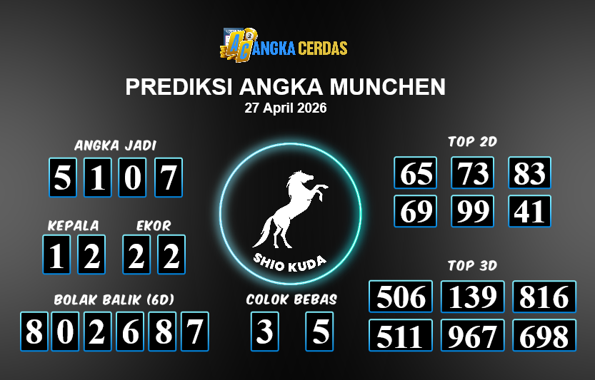 Prediksi Togel MUNCHEN untuk hari ini Senin, 27 April 2026, adalah salahsatu jenis togel yang memiliki banyak penggemar.Ini terutama ditujukanbagi Anda yang menyukai 4d/3d/2d. Prediksi Angka Cerdas yang kamisediakan,bisa