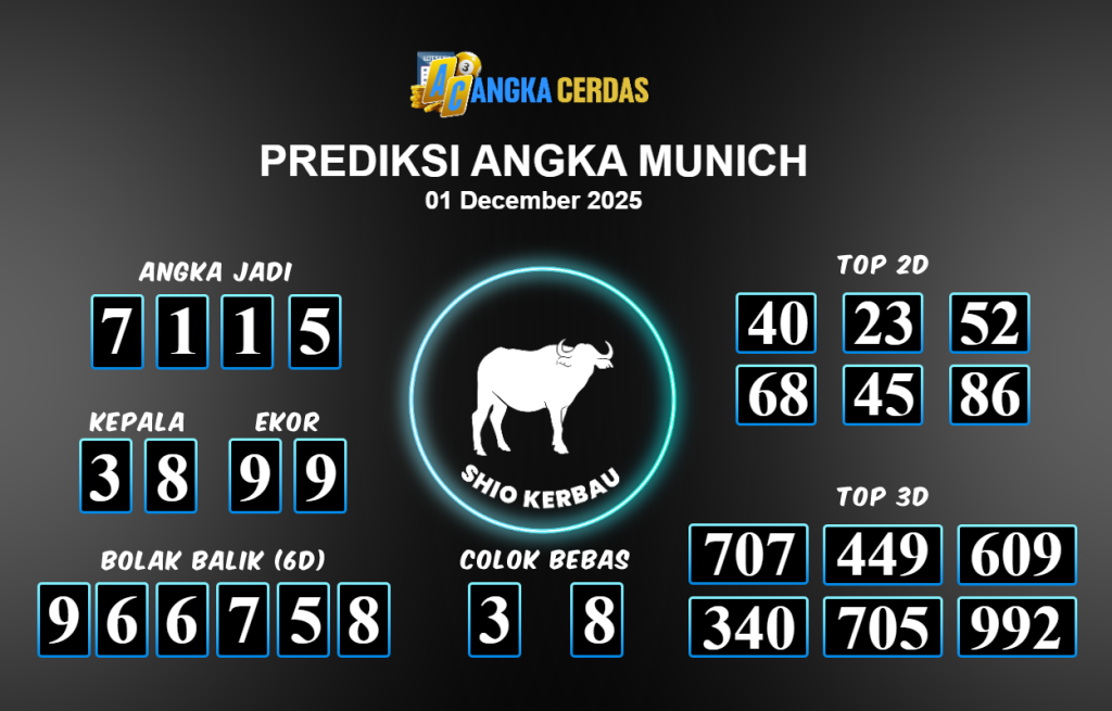 Prediksi Togel MUNICH untuk hari ini Senin 1 Desember November 2025, adalah salah