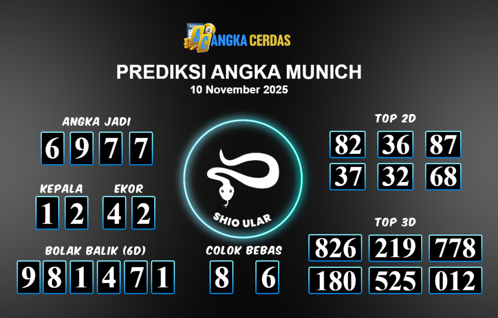 Prediksi Togel MUNICH untuk hari ini Senin 10 November 2025, adalah salah