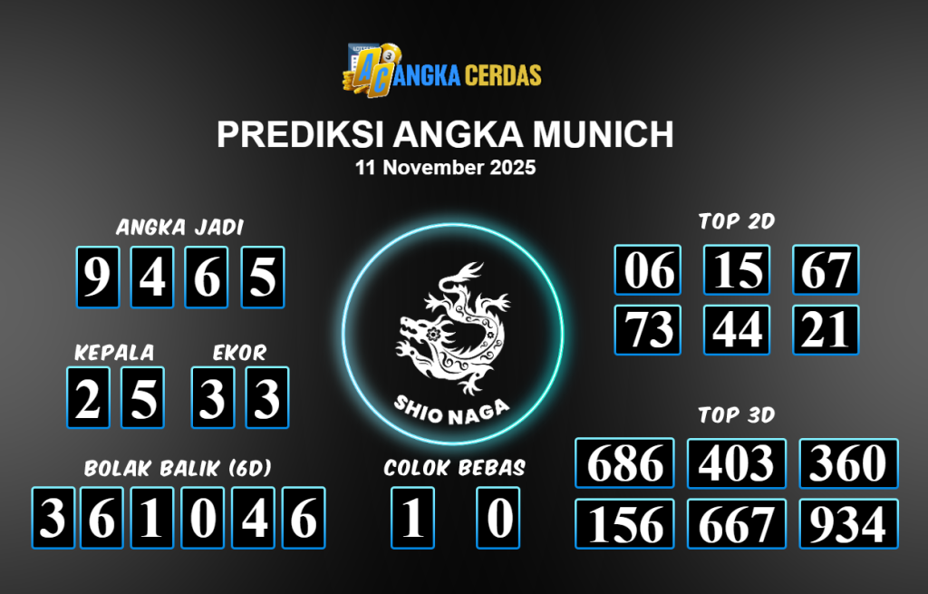 Prediksi Togel MUNICH untuk hari ini Selasa 11 November 2025, adalah salah