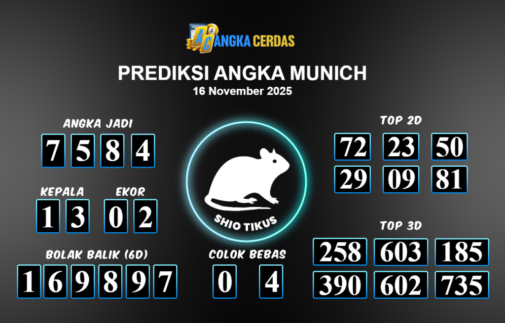 Prediksi Togel MUNICH untuk hari ini Minggu 16 November 2025, adalah salah