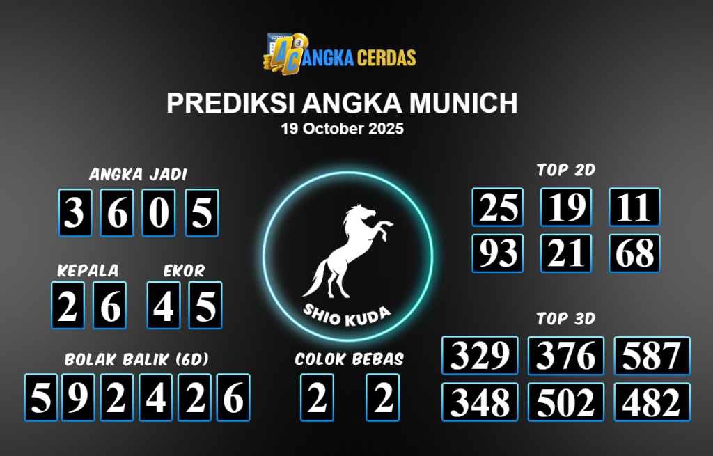 Prediksi Togel MUNICH untuk hari ini Minggu 19 Oktober 2025, adalah salah