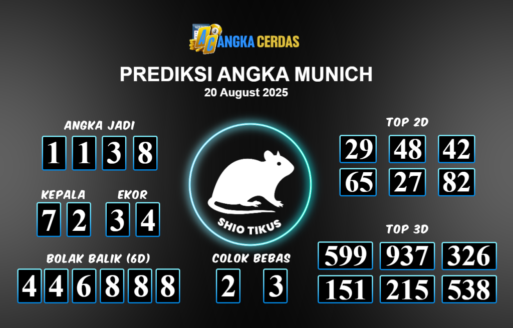 Prediksi Togel MUNICH untuk hari ini Rabu 20 Agustus 2025, adalah salah