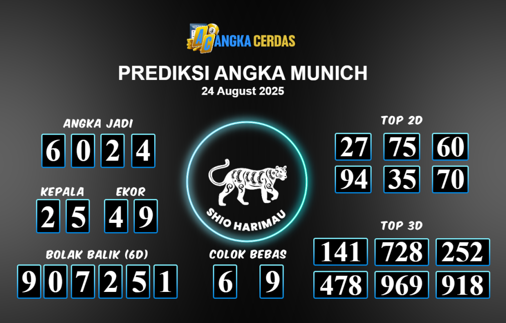Prediksi Togel MUNICH untuk hari ini Minggu 24 Agustus 2025, adalah salah