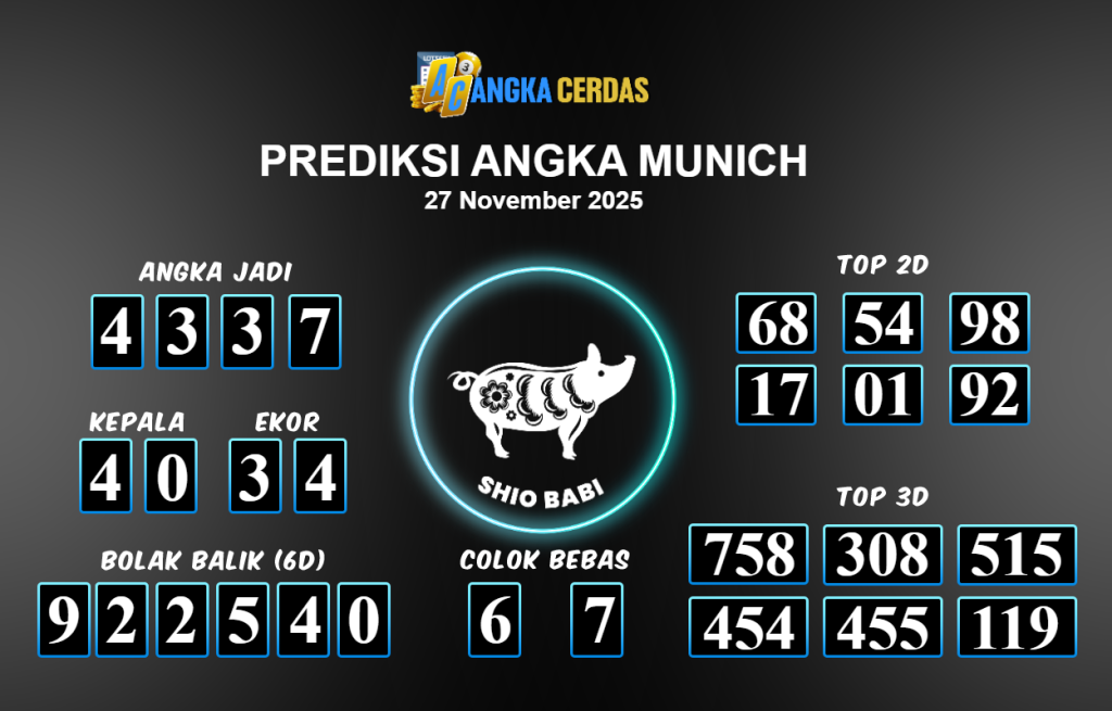 Prediksi Togel MUNICH untuk hari ini Kamis 27 November 2025, adalah salah