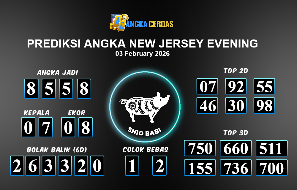 Prediksi Togel NEW JERSEY EVENING untuk hari ini Selasa 03 Februari 2026, adalah salah