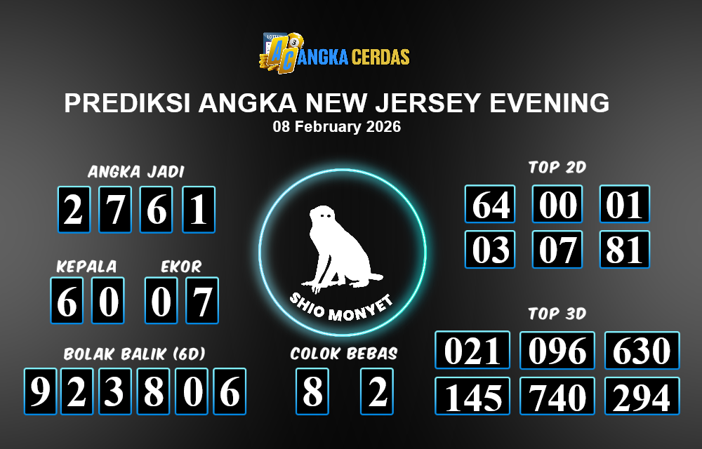 Prediksi Togel NEW JERSEY EVENING untuk hari ini Minggu, 08 Februari 2026, adalah salah