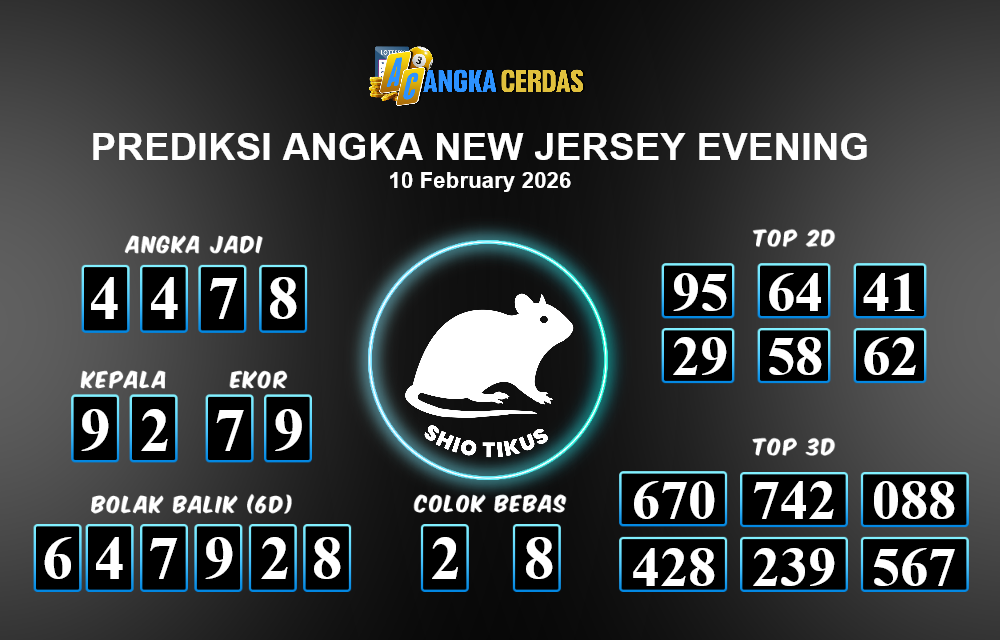 Prediksi Togel NEW JERSEY EVENING untuk hari ini Selasa, 10 Februari 2026, adalah salah