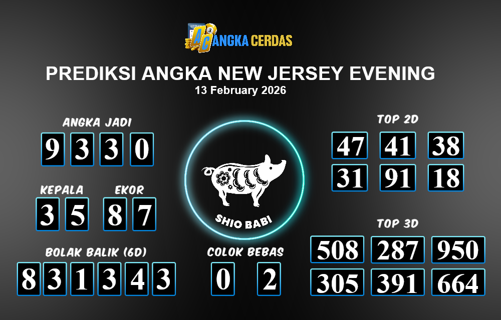 Angka Cerdas : Bocoran Prediksi Togel NEW JERSEY EVENING Tanggal 13 FEBRUARI 2026