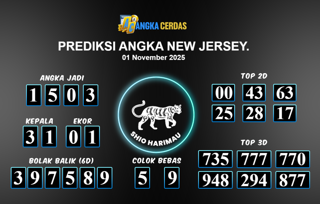 Prediksi Togel NEW JERSEY untuk hari ini Sabtu 01 November 2025, adalah salah