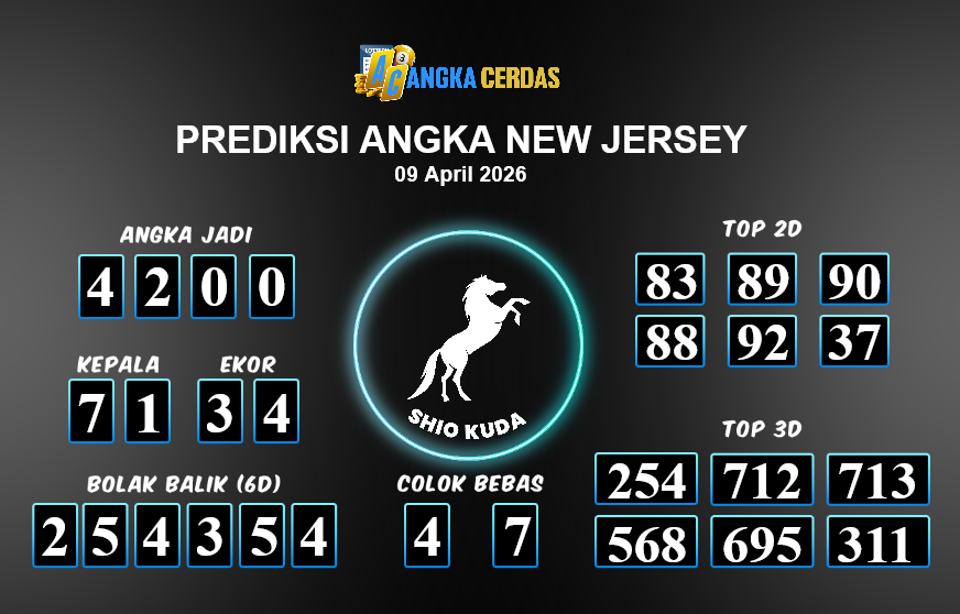 Prediksi Togel NEW JERSEY untuk hari ini Kamis, 09 April 2026, adalah salah