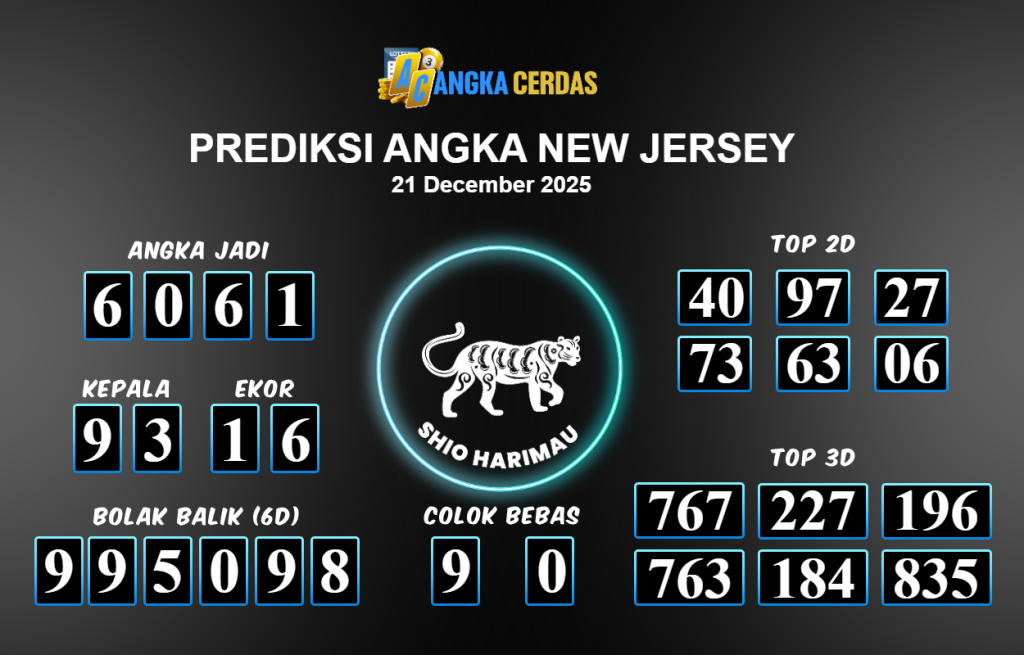 Angka Cerdas : Bocoran Prediksi Togel NEW JERSEY Tanggal 21 Desember 2025