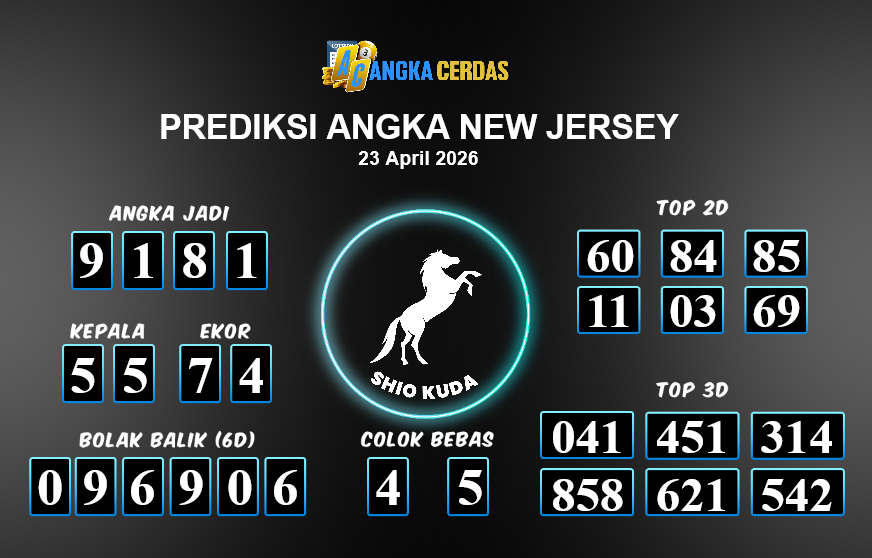 Prediksi Togel NEW JERSEY untuk hari ini Kamis, 23 April 2026, adalah salahsatu jenis togel yang memiliki banyak penggemar.Ini terutama ditujukanbagi Anda yang menyukai 4d/3d/2d. Prediksi Angka Cerdas yang kamisediakan,bisa