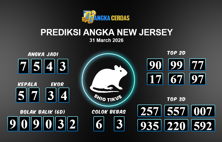 Angka Cerdas : Bocoran Prediksi Togel NEW JERSEY Tanggal 31 MARET 2026