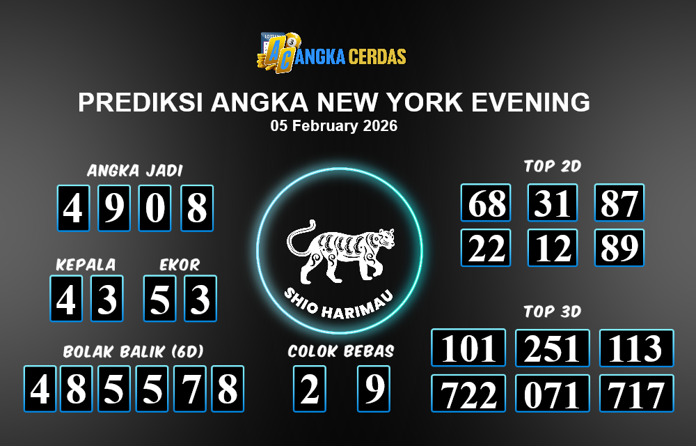 Prediksi Togel NEW YORK EVENING untuk hari ini Kamis, 05 Februari 2026, adalah salah