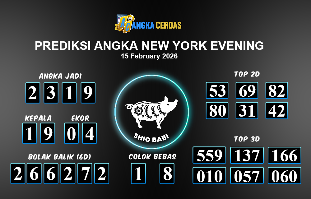 Prediksi Togel NEW YORK EVENING untuk hari ini Minggu, 15 Februari 2026, adalah salah
