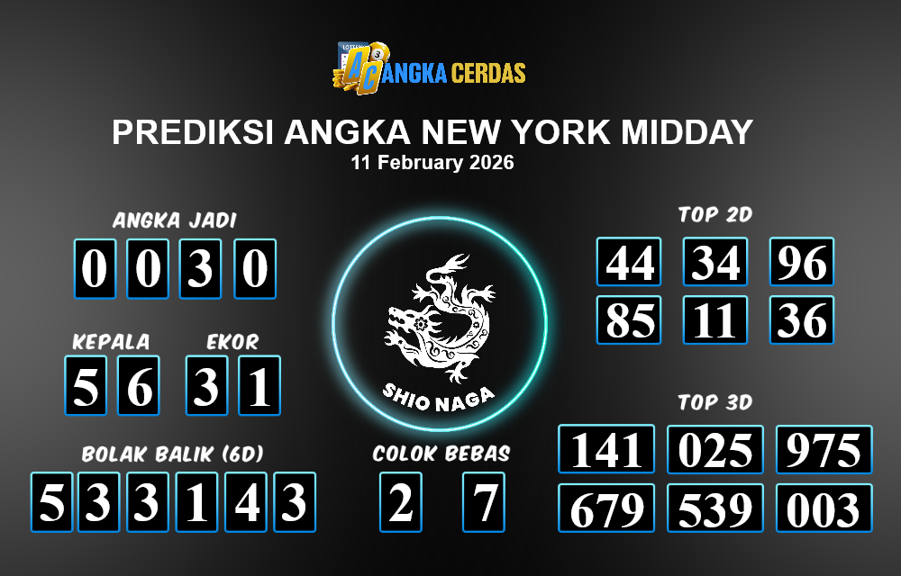 Prediksi Togel NEW YORK MIDDAY untuk hari ini Rabu, 11 Februari 2026, adalah salah