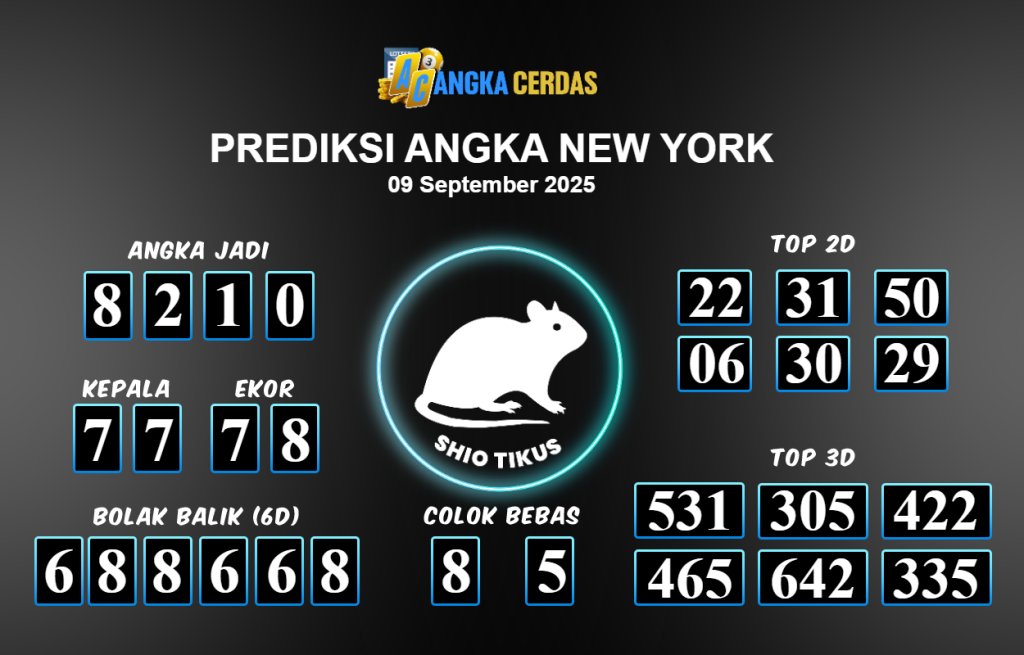 Prediksi Togel NEW YORK untuk hari ini Selasa 09 September 2025, adalah salah
