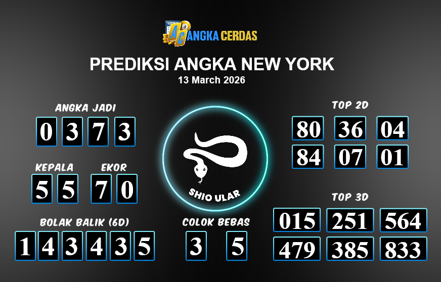 Prediksi Togel NEW YORK untuk hari ini Jumat, 13 Maret 2026, adalah salah