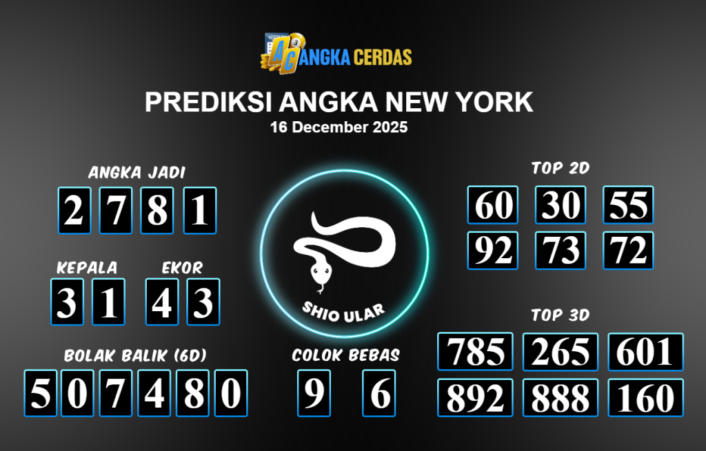 Prediksi Togel NEW YORK untuk hari ini Selasa 16 Desember November 2025, adalah salah