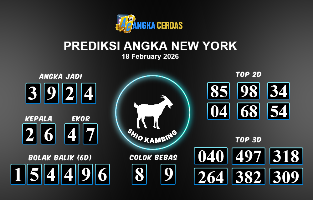 Angka Cerdas : Bocoran Prediksi Togel NEW YORK Tanggal 18 FEBRUARI 2026